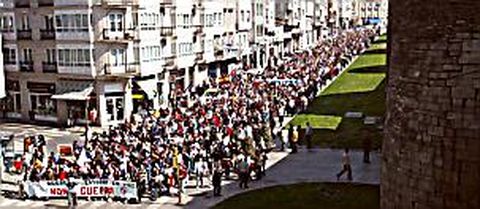 20 mar 2003 . Actualizado a las 06:00 h.Igual que el ataque de Estados Unidos a Irak estaba previsto, también lo estaba el movimiento de protesta en Lugo. Cuando comenzaron los bombardeos contra el país árabe también dieron inicio las movilizaciones que convocaron la Coordinadora Galega pola Paz y la Mocidade Galega pola Paz. Si a las tres y media se lanzaron los primeros misiles, a las cuatro de la mañana ya había una veintena de lucenses delante de la Subdelegación del Gobierno para mostrar su indignación. Estaban en silencio y con unas velas encendidas. Fue el preámbulo de las movilizaciones y protestas que varios miles de lucenses mostraron a lo largo de todo el día. Una larga cola de universitarios arrancaron una marcha desde la biblioteca del campus por la avenida de Madrid, con pancartas con lemas de «Non á guerra». Se dirigían al Concello, donde otro buen número de estudiantes y profesores de secundaria les esperaban. Antes, habían mostrado su protesta ante la Subdelegación.Comenzaba así un paro en la educación lucense. Profesores de los institutos no impartieron clase y abrieron desde la primera hora lectiva un debate con sus alumnos sobre la crisis en Irak, para a continuación ir todos juntos a la manifestación. Según datos de la Consellería de Educación, el paro en la ciudad fue del 68,5%, la mayor de toda Galicia, mientras que en la provincia lo cifraron en un 41,8%.La gran manifestación partió al mediodía del Concello. Allí estaban el alcalde de Lugo, Xosé López Orozco; y la teniente de alcalde, Branca Rodríguez Pazos, entre otros miembros del gobierno local. Incluso el edil de Economía, Fernando Blanco, anuló una rueda de prensa para presentar la Festa da Primavera «porque hoxe non é o día máis adecuado para falar dunha festa», señaló. Pitidos La movilización arrancó hacia la Rúa da Raíña. En la cabeza iba una pancarta portada por alumnos en la que se podía leer «Queremos estudiar en paz. Non á guerra». Cerrando iban los adultos, los miembros de la Coordinadora Galega pola Paz, con integrantes del PSOE, BNG, CIG, CC?.?OO., UGT, y colectivos sociales y culturales de la ciudad. Al llegar a la calle San Marcos, los asistentes realizaron una sentada y una fuerte pitada delante de la sede del Partido Popular y de la Diputación, al igual que unos metros más adelante enfrente de la Delegación de Defensa. Fue el momento en que más personas se juntaron a la marcha de protesta. Los organizadores de la manifestación calcuraron unas 6.000 personas, mientras que la Policía Local la estimó entre 2.500 y 3.000 personas. Cortes de tráfico Cuando los manifestantes accedieron a la ronda da Muralla, por San Fernando, se agravaron los problemas de circulación. Las obras de Fomento y el colapso que había en San Marcos, no permitía que los coches circulasen por el centro o pudiesen entrar en la avenida da Coruña. Los policías locales intentaron controlar el tránsito de vehículos ante la improvisación que llevaba a cabo la cabeza de la manifestación. Es de destacar cómo la movilización se realizó con total normalidad y sin incidentes. Los asistentes corearon canciones que ya empiezan a ser clásicas en las últimas semanas: «Non á guerra, nunca máis»; «Todos al suelo, esto es un bombardeo»; «Bush, Aznar, limpade o voso mar, que merda con merda non se vai notar»; o «A única guerra, contra o chapapote».La manifestación, que entró en el casco viejo a través de la calle Montevideo, finalizó delante del Concello sobre la una y media de la tarde, previa parada delante de la Subdelegación del Gobierno, que estaba con las puertas cerradas. Al final, un estudiante leyó un comunicado en el que recordó a las víctimas del conflicto. Concentración A la ocho de la tarde, la Coordinadora Galega volvía a convocar a los lucenses a una concentración delante del Concello. Alrededor de 3.000 personas, según la Policía Local, comenzaron una manifestación que partió por la Rúa da Raíña en dirección a San Marcos, donde se pararon delante de la sede del PP y gritaron «Dimisión». La marcha circuló por Bolaño Rivadeneira, Quiroga Ballesteros, Santo Domingo, Rúa da Raíña y final en la Praza Maior. Como ejemplo de la movilización, cuando llegaba a Quiroga Ballesteros, todavía había gente entrando en San Marcos. Fue el inicio de las posibles largas jornadas de protesta de los próximos días.