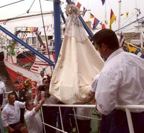 01 jun 2003 . Actualizado a las 07:00 h.Un cielo plomizo, el mar calmo como un plato llano y una riada de gente siguiendo una misma dirección: el puerto de Burela. La familia marinera de esta localidad se encomendó ayer por la mañana, una año más, a su patrona, la Virgen del Carmen. Y lo hizo a lo grande, con miles de personas dispuestas a arropar a su gente del mar en su homenaje anual a la patrona de los Mareantes. «Qué guapines van», decía en voz alta una asturiana apostada en el borde mismo del muelle burelés. Hablaba de los barcos. Grandes, medianos, y hasta los más pequeños, engalanados de flores y banderolas, vestidos de fiesta para la ocasión. El Mendaña , el Pescorial , Nuestra señora de la Blanca, el Croque ...y hasta la Saturno . Y al frente, la nave capitana, que este año fue el Villa de Ondárroa , el mismo que capitaneó años atrás la lucha de los boniteros de Burela contra los volanteros franceses e irlandeses. Blanco y azul, terminada la misa de campaña en el puerto, arropan a la Virgen marinera en la vestimenta de quienes la portan. No podían faltar los remos, ni el ruego: «Nuestra Señora del Carmen, sálvanos». Y los cielos se abren, y a pesar de la lluvia, los barcos se llenan para realizar la especial singladura, un poco más allá de su faro- guía, la Peña Burela. En la vieja rula, el sonido de la sirena tiene réplica en los barcos. Flores para los náufragos. Una corona se tira al mar en su memoria, «e son tantos», apunta una mujer de avanzada edad fiel a esta cita anual. Pero este año, la fatalidad volvió a jugar con los hombres del mar de Burela. Un ramo de flores se arrojó al mar con el nombre de Enrique, el marinero caboverdiano que desapareció, hace hoy una semana, del Bellavista . El mar, la mar y Burela, que hoy termina sus fiestas. Y el miércoles, una vez más, la costera del bonito.
