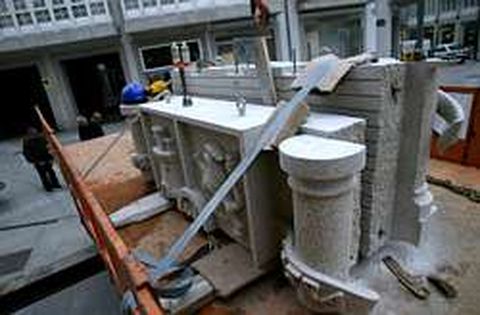 16 mar 2006 . Actualizado a las 06:00 h.TRES PERSONAS Y UNA GRÚA. El material fue trasladado en un camión y colocado por tres personas y una grúa UN TRABAJO DE MÁS DE TRES MESES. Preparar las piezas del nuevo escudo supuso un trabajo de más de tres meses EL MISMO VOLUMEN. El nuevo escudo tiene el mismo volumen que el anterior y es del mismo tipo de piedra NUMEROSOS RELIEVES. Los numerosos relieves de la obra hicieron más laborioso el trabajo del equipo humano ?a Subdelegación del Gobierno está a punto de estrenar oficialmente escudo constitucional en su fachada. Las laboriosas obras de montaje se desarrollaron a lo largo de toda la jornada de ayer y es posible que concluyan en la tarde de hoy. Adaptar la fachada del edifico de Armanyá a los nuevos tiempos supuso subir hasta las alturas unos cinco mil quilos de granito, según contaron ayer responsables de la empresa lucense PCM Granitos Moldurados que se encargó de todo el proceso, desde el diseño y elaboración hasta el montaje final. Todo el personal de la firma trabajó en la obra, explicó ayer el gerente. El primer paso consistió en hacer el modelo en perspectiva y proporcionado al espacio que dejó el viejo escudo. Hubo incluso un proceso de escaneado y otro de desbastado para, finalmente, pasar a manos del tallista Luis Martínez Eimil que invirtió más de tres semanas en los retoques. En la preparación intervino incluso un robot que llevó a cabo las tareas de desbaste de las piedras tras ser programado informáticamente. «Su trabajo fue similar al de un oficial de primera pero hay que dejar muy claro que lo fundamental fue la tarea ejecutada por todo el equipo humano sin el cual no sería posible la obra», explicó el gerente de la empresa. El tallista cantero Luis Martínez Eimil, autor de la colección de esculturas del paso de los escritores de la plaza Maior, confesó que hubo partes del escudo que resultaron muy laboriosas. Este es el caso de la corona y también de un león que figura dentro del escudo. Todos los elementos están tallados sobre la piedra, no pegados. Precisamente esta circunstancia, unida a la gran cantidad de fondos, hizo que los trabajos fuesen muy minuciosos. La obra tiene cuatro hiladas (piezas) en horizontal. Todas ellas van ancladas en perfiles de acero inoxidable a la fachada del edifico. «Caer non can», advirtió el tallista. Ninguna de las piezas del viejo escudo, que fue recuperado intacto, fue aprovechada para el nuevo. Los autores de la obra buscaron el mismo tipo de piedra que la usada para el emblema franquista para que no desentonara en la fachada. La empresa lucense que elaboró el escudo también se encarga de preparar piezas para la Sagrada Familia de Barcelona.