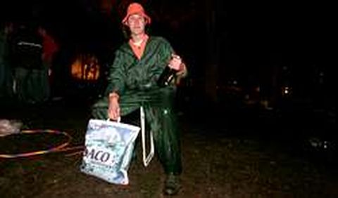 06 abr 2006 . Actualizado a las 07:00 h.?a carballeira del campus fue, durante doce horas, el territorio español y posiblemente europeo con mayor porcentaje de colocones. Los litros y litros de alcohol que circularon a lo largo del día comenzaron a pasar factura sobre las ocho de la tarde. Hasta la media noche del jueves hubo desfase absoluto pero. ¿Quién podía esperar que el agua acabase por imponerse al alcohol? Un chaparrón inesperado mandó a los más borrachos a dormir y a los (as) esponjas a privar a otro lado. Los carballos no hablan. Si lo hicieran contarían con todo lujo de detalles como fue la fiesta o el macrobotellón, como se quiera, más sonado de los campus universitarios de Galicia. Algunos posiblemente echarían chispas por las decenas de meones que les regaron su corteza a lo largo de todo el día. En plena oscuridad, fotógrafo y redactor planean encontrar algo de calimocho, del mucho calimocho que a lo largo del día se fabricó en el festejo. Objetivo fallido. A las doce de la noche, lo único que había era agua y no de Fontecelta precisamente, sino de la que venía de arriba. Aún así, sobrevivían los más resistentes. Las fotos son un buen puntillo para engancharse a un grupo en el que no quedaba nadie que no hubiese bebido lo suficiente. Ya no tenían una gota de alcohol y planeaban seguir pero ya en el centro en los pubs. «Por 12 euros colega nos pusimos las botas. Privamos un caldero de 20 litros de calimocho, además de no sé cuantas birras», dice Jaime, de Curtis. Por su estado bamboleante y los problemas para arrastrar la lengua en algunos momentos pocas cosas se le pueden creer. Un guardia de Tráfico hubiese rellenado todo un boletín explicando los síntomas que delataban a este borracho. Cuando parece que había trazas de conseguir beber gratis porque otro grupo se mostró muy aperturista a la hora de dejarse hacer fotos, resulta que de eso nada. Tanto buen rollito era para que les llevásemos en coche al centro para seguir de movida. «Tíos esperadnos que vamos avisar a unas pivas (chicas) y ya subimos», dijo uno de ellos. Érache boa. Aire. El que quiera subir al centro, ya sabe: en el coche de San Fernando. Mal pintaba la noche. Ni bebida, ni reportaje. Después de otro intento fallido con un pequeño grupo que estaba a su bola debatiendo de lo divino y lo humano en esos momentos en los que el alcohol empieza a hacer de las suyas, apareció por entre los carballos un tipo especial: Tito, de Ponteareas. Sin duda, el rey de la noche. Este «súper star» de la carballeira apareció de la siguiente guisa (pueden verle en la foto superior): un traje de aguas completo, un gorro de tela (si fuera una gorra de Piensos Biona sería ya lo máximo), una silla de playa, un hula hop, una bolsa térmica llena, unas tablas de parqué y una litrona. No pidan explicaciones de cómo se las arreglaba para llevar todo. A medio camino entre la borrachera y la serenidad, este estudiante de Agrónomos ofreció una verdadera clase de economía. «Mirade, eu gastei 10 euros en bebida. Emborracheime e disfrutei pero, claro, como non me sobran os cartos tiña que recuperalos que a vida esta fodida. Entón fun a casa puxen o traxe de augas e logo, a traballar. A remexer na carballeira», dijo. Chámalle tonto ao rapaz. Con apenas tres o cuatro vueltas por el campo de batalla consiguió llenar su bolsa térmica de litronas sin estrenar que otros habían dejado intactas como consecuencia de haber perdido el control. Cuando vio la cámara de fotos, Tito dudó en abrir una de las litronas pero se lo pensó y finalmente sólo hizo el paripé. «É que a cervexa perde o «jas» moi axiña», puso como disculpa. La táctica de adelantarse a los hombres verdes de Urbaser ya la puso en práctica en otras ediciones y le funcionó. Dice que puede conseguirse bebida gratis, sin abrir, para todo un mes. Todo un experto en buscarse la vida, sí señor. ¿Y el hula hop? Se lo dejó una amiga para que se lo cuidase y guardase. No le falló. ¿Las tablas de parqué? Las guardó del año pasado y las llevó para sentarse. La silla de playa, la encontró y quizás le sirva para el año que viene. Sin duda, el rey de la carballeira.