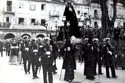 03 abr 2007 . Actualizado a las 07:00 h.VIERNES SANTO, 3 DE ABRIL DE 1942. La Procesión del Santo Entierro, única existente, discurre por la plaza de España. Por primera vez la imagen de la Virgen de la Soledad es portada por penitentes con capuz de la Hermandad del Santo Entierro, primera cofradía creada en Lugo. VIERNES SANTO, 31 DE MARZO DE 1945. Penitentes de la Hermandad del Santo Entierro portan el paso del Cristo Yacente. La urna que lleva la imagen fue una donación a la VOT de la reina Isabel II por la gentileza que los terciarios tuvieron con ella durante su visita a la ciudad. La actual Semana Santa lucense no ha sido siempre tal y como la conocemos hoy en día. Este nuevo período de esplendor que actualmente vivimos inicia su gestación en 1937 y se presenta en sociedad en 1942, consolidándose durante esta década y la siguiente. Pero antes de profundizar en todo esto, se impone obligatoriamente hacer un breve repaso de su historia desde los inicios. La representación escénica y el culto público de los principales misterios de la vida de Cristo fueron introducidos en el pueblo cristiano de todo el orbe por la Orden Franciscana. Con anterioridad al siglo XVII, los claustros del antiguo convento de San Francisco son el escenario en los días de Semana Santa de las principales ceremonias. Las devociones fomentadas por los franciscanos, como la de la Virgen de la Soledad, sirven de germen de las futuras procesiones cuando, conforme al orden litúrgico y al modo introducido en otras ciudades, se las desposee del carácter que tenían dándoles la expresión propia de la calle. Gradualmente, la responsabilidad de la organización de las celebraciones empieza a trasladarse de la Orden de Menores (PP. Franciscanos) a la Venerable Orden Tercera de San Francisco (VOT). Desde el momento de máximo esplendor de la VOT lucense que comienza con la inauguración en 1698 de la capilla de la Soledad, propiedad exclusiva de la Orden. Todos los desfiles procesionales son organizados con las debidas licencias únicamente por los terciarios, partiendo siempre de la mencionada capilla. En el convento se seguirán celebrando otras antiquísimas ceremonias propias de la Semana de Pasión, como el Acto del Desenclavo. Las procesiones existentes en la antigua Semana Santa lucense fueron tres, enumeradas a continuación por orden de aparición: la del Santo Entierro, la de la Virgen de la Soledad y la de la Virgen de los Dolores. La Procesión del Santo Entierro se celebraba con anterioridad a 1840 (fecha de la primera fuente escrita de que se dispone) todos los días de Viernes Santo, saliendo ininterrumpidamente desde este período hasta la implantación de la Segunda República, régimen político durante el cual fue suspendida en los tres años de gobierno de la izquierda a causa de la persecución religiosa. Idéntica cronología puede aplicarse a la Procesión de la Virgen de la Soledad, que discurría en silencio la noche de Viernes Santo, y a la Procesión de la Virgen de los Dolores, que se organizaba con anterioridad al año 1885 el Domingo de Ramos, como broche final de la Novena en honor a la Santísima Virgen de los Dolores que hasta ese momento solía celebrarse en la Capilla de la Soledad de forma que terminase siempre ese día; a partir de la citada fecha, la VOT acuerda que dicha novena comience siempre el jueves de la cuarta semana de Cuaresma para hacer coincidir su término con el propio día de Viernes de Dolores. Al sumarse la ciudad de Lugo al Bando Nacional desde los inicios de la Guerra Civil Española, en 1937 se restablece definitivamente la Procesión del Santo Entierro el día de Viernes Santo. Los lucenses tendrán que esperar hasta 1951 y 1965 para volver a ver desfilar nuevamente las procesiones de la Soledad y de los Dolores. Causas El factor determinante del nuevo renacer que se empieza a vivir en los años 40, junto con la efervescencia religiosa del momento, es la llegada al convento franciscano del P. Miguel Quecedo, nuevo Guardián elegido en el Capítulo Provincial de 1941 y Consiliario de la VOT, quien desde el primer día se fija como meta engrandecer la Semana Santa con la fundación de todas las cofradías penitenciales posibles, la adquisición de nuevos pasos y la salida de más desfiles. En pocos meses, Fray Miguel consigue reunir a un grupo de seglares, principalmente oficiales del ejército, que en 1942 serán los primeros 12 penitentes con capuz, que portando a hombros las imágenes del Cristo Yacente y de la Virgen de la Soledad. Había nacido la Hermandad del Santo Entierro que 5 años después, con la adquisición del paso titular, se rebautizaría como Cofradía del Desenclavo del Señor, primera de las tres cofradías que en esa década se crearon.