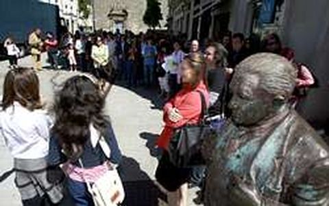 17 may 2007 . Actualizado a las 07:00 h.Reivindicando a lingua e a cultura galegas e homenaxeando a figura de María Mariño, medio cento de persoas participaron onte nun paseo literario en conmemoración do Día das Letras Galegas. A marcha ía encabezada pola concelleira de Cultura, Concepción Burgo, e o responsable de Ágora Cultural, José Blázquez, organizadores deste acto, que se vén celebrando de xeito consecutivo dende hai seis anos. O punto de partida elixido como inicio deste paseo literario foi a praza Anxo Fernández Gómez, detrás da Casa do Concello, xusto a carón da estatua do escritor lugués máis recoñecido: Ánxel Fole. Alí, logo da presentación oficial do acto a cargo de Burgo e Blázquez, Vania e Carlota, alumnas do colexio María Auxiliadora, leron un texto sobre a vida de María Mariño e un poema desta autora que naceu en Noia e faleceu no Courel. O percorrido continuou pola rúa San Pedro coa lectura de novos textos da poeta homenaxeada, que foron lidos, entre outros, polos concelleiros socialistas Francisco Fernández Liñares e José Piñeiro, e por máis alumnos e tamén mestras do colexio María Auxiliadora. Tanto dende a organización como entre as persoas participantes no paseo literario quíxoselle dar especial relevancia ao feito de que o Día das Letras Galegas deste ano estivese dedicado a unha muller e por iso non só se leron poemas de María Mariño, senón tamén doutras destacadas escritoras galegas, como o Negra sombra , de Rosalía de Castro, que se escoitou xusto ao pé do acceso á Muralla por Campo Castelo. No paseo polo adarve continuaron as lecturas ata chegar á altura da Porta Santiago e da praza Pío XII, onde rematou o percorrido cunha escenificación teatral sobre a vida e a obra de María Mariño, titulada Letra Viva e creada especialmente para este día pola compañía Palimoco, encabezada por Paloma Lugilde, que xa interviñera ao longo do paseo recitando e cantando algunhas das composicións seleccionadas.