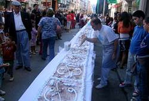 27 jun 2007 . Actualizado a las 07:00 h.El San Xoán del 2007 ya es historia, pero por lo menos a los sarrianos les quedará el grato recuerdo de haber despedido los festejos paladeando un sabroso pastel. La pastelería Caprichos volvió a invitar a los vecinos a un pastel en la calle Calvo Sotelo. La gigantesca tarta para que nadie se quedara sin probarla medía más de 25 metros de longitud y se colocó en una larga tarima preparada para la ocasión en la calle Calvo Sotelo. José Ramón Gil fue el encargado de preparar esa delicatessen , denominado Capricho Dulce y consistente en un Daquas de almendra. Estaba relleno de crema pastelera y mousse de chocolate. En el acto, celebrado en plena calle a última hora de la tarde, participaron centenares de personas, mayoritariamente niños, aunque también fueron muchos los adultos que no pudieron resistir la tentación. El concierto de Lorena puede considerarse como la última gran actuación de los festejos de este año. Centenares de espectadores, sobre todo público joven, acudieron a la Avenida de Becerreá para ver en directo a la última ganadora de Operación Triunfo. El hecho de ser un día laborable restó afluencia al evento respecto al de un día antes de Efecto Mariposa. A pesar de todo los asistentes al concierto alabaron la actuación de la joven solista, que interpretó mayoritariamente canciones de su primer trabajo. La jornada de ayer fue denominada de la Desfeita, por lo que la villa ya comenzó a recuperar su pulso normal y a desperezarse después de cinco intensos días de celebraciones. La afluencia de gente en las calles se debió más a que ayer fue día de feria y muchas personas aprovecharon para despedir el San Xoán acudiendo a las casetas de pulpo. El único signo externo que denotaba que continuaban unas horas más las fiestas fue la presencia en las calles, también en el campo de la feria, de las charangas Entre Amigos y Cristal. Ambas recordaban a los más despistados que en San Xoán estaban dando sus último coletazos. Al cierre de esta edición estaba comenzando la última verbena con la orquesta Armonía Show, de Tenerife. Alrededor de las dos de la madrugada estaba previsto el lanzamiento de cohetes para anunciar la despedida del San Xoán 2007.