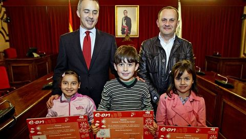 1A enerxía das festas es el título del concurso organizado por E.ON y por el Concello de Lugo dentro del pasado San Froilán. El fondo de la iniciativa era trasladar a los más pequeños la importancia de la eficiencia y del ahorro energético, y la forma, un concurso de dibujos realizados en la carpa instalada en el centro de la ciudad. Más de 5.000 niños participaron en el concurso, cuyos premios se entregaron ayer: Mario Ferreiro Ferreiro, Raquel Suárez Sánchez, Lucía Peláez Iglesias y Ainhoa Camila Expósito Sierra recibieron ayer sendos vales de 50 euros para la compra de material escolar o libros. El concejal de Cultura, Antón Bao, y el responsable de E.ON en Lugo, Luis García Santalla, entregaron esos galardones en un acto en el que se destacó la importancia de estas iniciativas y de la colaboración entre empresas e instituciones.