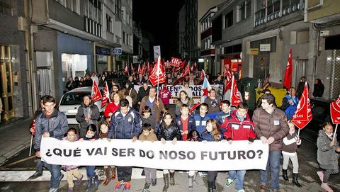 Una pancarta que portaban hijos y familiares de trabajadores en la que se leía : «Qué vai ser do noso futuro?» abría la manifestación, seguida de otra que portaban los trabajadores y una más tras la que se colocaron los alcaldes de la comarca y el de Portomarín. Tampoco faltó a la cita el presidente de la Diputación, José Ramón Gómez Besteiro, y los parlamentarios autonómicos Jaime Íñiguez (PP) y Cosme Pombo (BNG).