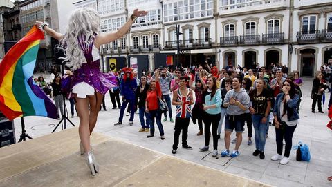 1En la capital de la provincia coincidieron ayer dos celebraciones notablemente dispares. La praza de San Marcos fue escenario por la tarde de las actividades programadas con motivo del Día del Orgullo Gay. El colectivo de lesbianas, gays, bisexuales y transexuales Alas, en colaboración con la Diputación y el Concello, organizaron el Orgullo Lgtb Lugay 2014. Tras la lectura de un manifiesto reivindicativo, hubo varias actuaciones musicales. Una de las más esperadas era la de Lara Sajén, integrante de Fangoria y que acaba de presentar un trabajo en solitario. También estaba previsto que subiesen al escenario multicolor el grupo Leblond, el dúo lucense Las Supremas, la dragqueen Drag La Canalla y el polifacético Diablillo Lj, el transformista más reconocido de la noche lucense.