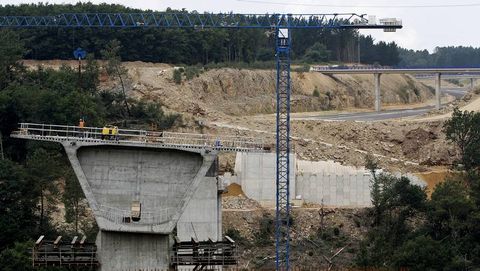 Bastantes kilómetros del trazado ya fueron asfaltados. Los trabajos más intensos se centran ahora en la construcción del viaducto sobre el río Miño. Ya están levantados dos pilares de hormigón sobre el cauce del río y se espera que a lo largo de este verano se coloquen los tableros que darán forma al que será el quinto puente del municipio de Lugo: Ombreiro (junto a la potabilizadora), el de As Saamasas, el Romano y el puente nuevo.