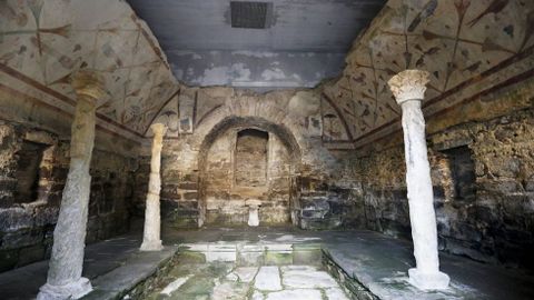 «Executouse unha obra para corrixir as filtracións de auga que se producían polos muros e cuberta, o que non significa que non exista humidade, xa que o monumento é un recinto húmido en si mesmo», señalan desde Cultura. Así como se hizo en el 2016, durante el 2017 seguirán realizando actuaciones de conservación preventiva con el control termohigrométrico (condiciones físicas ambientales de temperatura, humedad y ventilación), además de la toma de datos de sales, control de la colonización biológica de los muros y la limpieza del pavimento de la piscina y del ámbito do nártex, el atrio separado del resto de la nave. También, anuncian que los técnicos revisan la pintura mural y elaboran un estudio de alteraciones de la fachada del aula vinculada al nártex.