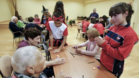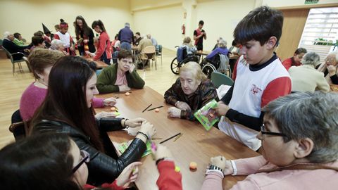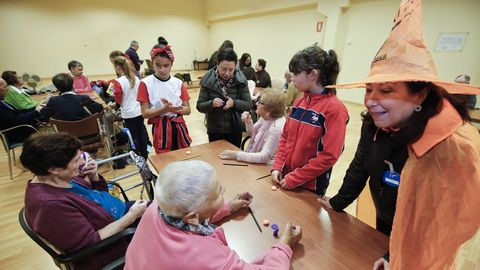 31 oct 2018 . Actualizado a las 20:13 h.. El Colegio Cervantes, de Lugo, celebró ayer una original actividad de Samaín, con un taller de manualidades en la residencia de mayores Orpea, en el propio barrio, de modo que contribuyen a la educación intergeneracional.