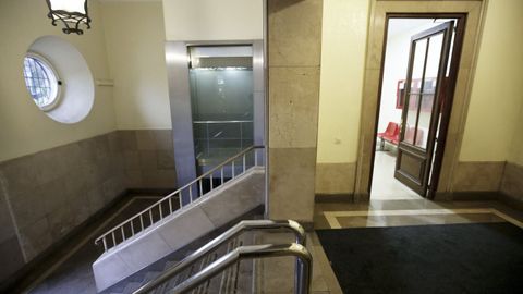 En el edificio están operativas tres plantas y la cuarta está cerrada. Parece que el ascensor que llega hasta el bajo es un aparato muy antiguo y hay dificultades para conseguir piezas para su reparación. Falla con frecuencia y días atrás parece que alguien se quedó encerrado en él. El hecho es que ayer, un cartel avisaba de que está fuera de servicio.