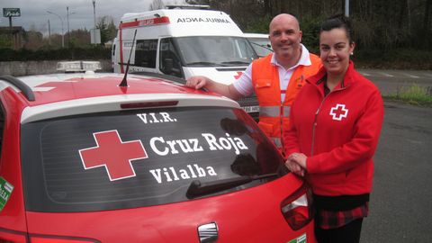 Carlos Cea, coordinador de la Cruz Roja de Vilalba, y Estefanía Barrio, trabajadora social, destacan que la cercanía con la gente es uno de los rasgos básicos de su trabajo