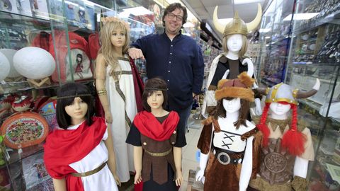 Nas perchas do bazar Agarimo conviven atavíos fieis á historia con disfraces, «tenemos dos calidades», sinala Pedro Ponce. El é dos que tenta ofrecer aos clientes as dúas opcións, para adaptarse aos petos e tamén ás presas. Conta que, como o negocio pecha ás 11 da noite, é habitual que en pleno Arde Lucus moitos visitantes se acheguen tarde ata a tenda en busca dalgunha vestimenta rápida, unha espada, unha coraza ou unha coroa de flores.