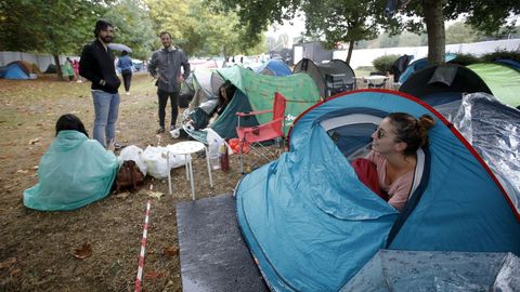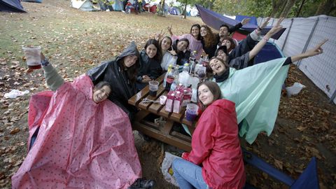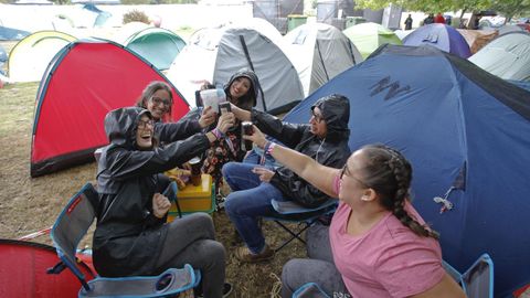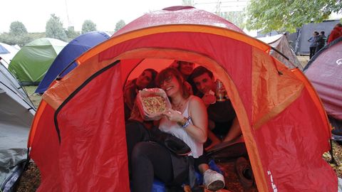 El sábado amaneció tarde en la zona de acampada a orillas del Miño. La noche anterior había sido larga y en muchos todavía perduraba la resaca musical (y de la otra) de las actuaciones de Marea, La M.O.D.A. o La Pegatina. Como los conciertos de ayer no arrancaban hasta media tarde, entre los que decidieron pasar la noche a orillas del Miño hubo quien aprovechó los autobuses para acercarse hasta el centro a comer, dar una vuelta y hacer turismo, mientras otros se buscaron la vida para pasar el rato. Unos prolongando las horas de sueño, otros cartas en mano y otros muchos recobrando fuerzas con tentempiés de toda condición. Desde las socorridas bolsas de patatas fritas hasta las fiambreras rebosantes de ensalada de pasta. Que para aguantar todo el cartel hace falta energía.