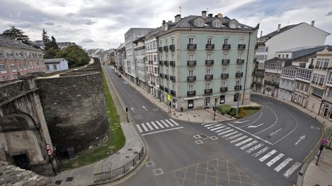 18 abr 2020 . Actualizado a las 12:01 h.Las imágenes del Lugo confinado regalan sensaciones muy dispares e incluso difíciles de expresar. La Ronda, que no está peatonalizada, figura estarlo con las instantáneas que dibuja estos días. Un recorrido por la Muralla permite disfrutar de los sonidos que irrumpen de repente, en medio del silencio. Pájaros, niños que juegan en sus casas y cuyas voces trascienden por los balcones, el viento susurrando entre las comisuras del monumento romano y azotando las hojas de los árboles. Parece que los pocos coches que pasan se atreven a romper la soledad que transmite la ciudad. Todo penetra en los oídos de una forma nueva. Nunca antes se había percibido un ambiente similar en la capital de la provincia de Lugo.