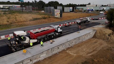 Tras estos meses de trabajo, comenzó a aplicarse el aglomerado en caliente de la zona que se ha ampliado. Un ámbito que abarca 456 metros de vía y que va de la rotonda de A Garaballa a la de Benigno Rivera.