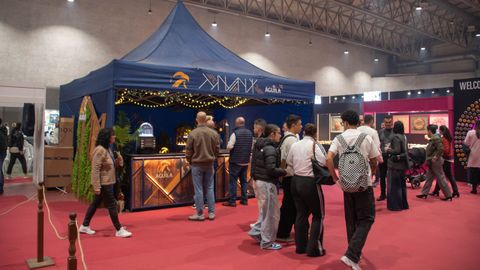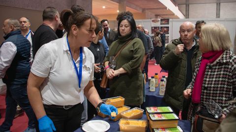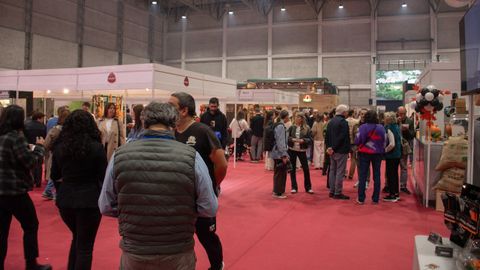 Decenas de puestos de todo tipo esperan a los curiosos en el Pazo de Feiras e Congresos nada más acceder al pabellón principal. La mayoría están relacionados con el sector de la alimentación, pero otros ofrecen desde vajilla a instrumentos de bricolaje o decoración. Alguno incluso se sumó al Samaín, que llega la próxima semana, dándole a sus negocios una estética naranja y negra, con calabazas y telas de araña.
