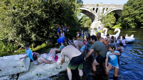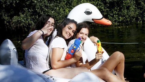 Los vecinos de Rábade disfrutaron de una tarde lúdica junto a amigos y familiares. Desde Madrid llegó Manuela que pasa estos días en casa de Ana. Ambas recuerdan los primeros años del descenso «en los que había muchísimas barcas y eran muy originales».