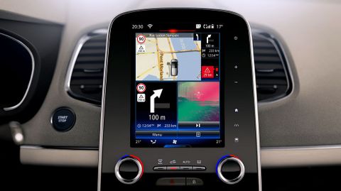 Permite ajustar el «set up» del coche. Usando terminología de la Fórmula 1, el sistema Multisense que equipa el Espace permite ajustar parámetros del coche como el chasis 4Control con cuatro ruedas directrices, la suspensión adaptativa, la respuesta del motor y de la caja de cambios, la dirección y hasta el ruido del motor o la iluminación interior. Podemos pasar de un coche cómodo, de suspensiones blandas y respuestas de motor que cuidan los consumos a una opción deportiva donde prevalecen las aceleraciones y la suspensión dura para negociar mejor la curvas. El conductor decide e interactúa con estos parámetros a través del R-Link en la pantalla central.