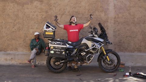 En el mundillo de los moteros con vocación de aventura, Carlos García Portal (Madrid, 1975) es un pequeño mito. Su apodo, Sinewan, es un simpático guiño al actor Ewan McGregor, que recorrió el mundo en moto con muchos medios. Carlos también lo hizo, pero a pelo.