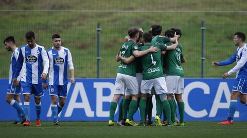 El cuadro deportivista mejoró tras el 0-1, a medida que los visitantes se fueron metiendo atrás. Aún así, en la primera mitad, solo hubo que destacar un centro de Blas que remató Uxío de cabeza a las manos de Ian Mackay. Los racinguistas, por su parte, solo volvieron a inquietar la meta local con un remate desde la frontal de Aarón Sánchez, en el arranque de la segunda mitad.