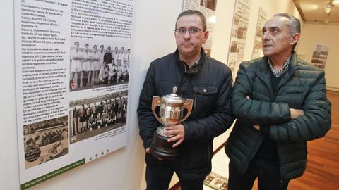 Acompañando a los paneles, el público podrá ver objetos icónicos. «Creo que Fran es el mayor coleccionista de piezas del Racing del mundo, así que en la muestra hay objetivos de lo más variados. Por ejemplo, camisetas, entradas, periódicos originales, pines... Además de documentos, actas...», detalla Deza. Y, por supuesto, los mejores trofeos. «Están los principales que se conservan, entre ellos, el que creemos que es la joya y que cuenta con un espacio especial, la Copa de Subcampeón de España en 1939. Y una réplica exacta de la camiseta que llevó el Racing en la final. Hay que honrar esa Copa», destaca el historiador. Otra de sus piezas favoritas son el Teresa Herrera o la Copa Ibarra. «En el año 1927 la jugó el Racing contra el Dépor y ganó. Es el trofeo mas antiguo que se conserva y tiene un recuerdo curioso, se jugó a dos partidos, y en el de Ferrol, la firma regaló botellas de aceite a las mujeres que fueron a verlo», apunta.