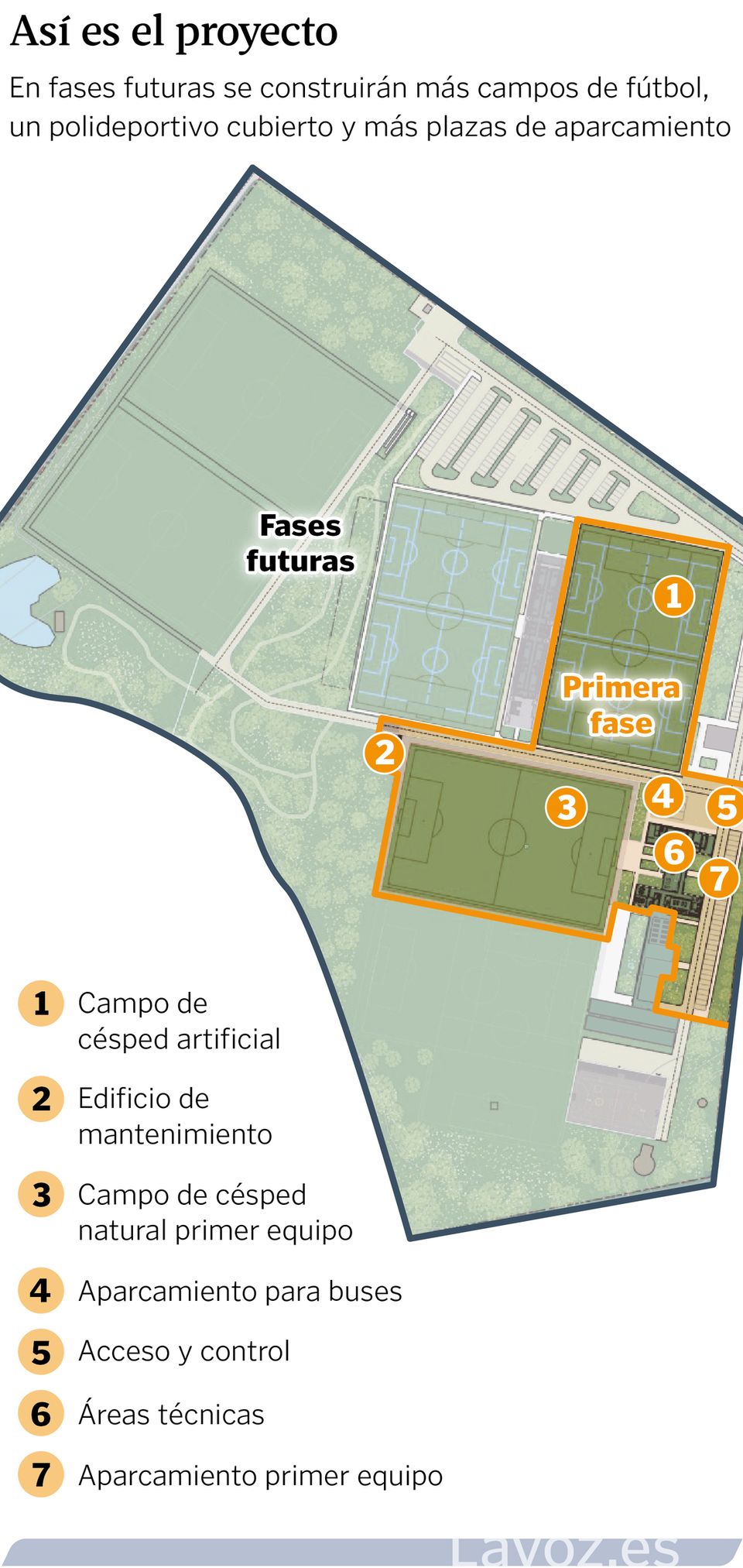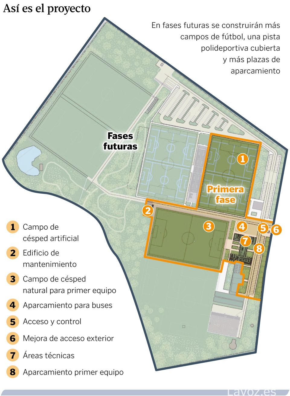 El club ha optado finalmente por rehabilitar uno de los edificios militares existentes, concretamente el que tiene forma de H y se encuentra situado en el acceso al recinto, para incorporar zona de vestuarios, gimnasio, enfermería, lavandería y áreas técnicas. Así, con los plazos que manejó la propiedad en los últimos años, la primera fase estará concluida con un año de retraso sobre la fecha inicial de julio del 2025, que era la que se barajaba inicialmente.