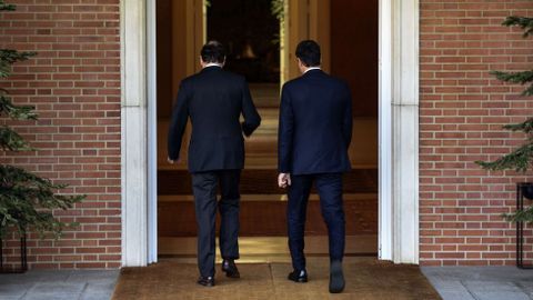 Estas dos espaldas entrando en la Moncloa debieran sentir más que nunca el peso de su inmensa responsabilidad, el peso de 46,5 millones de españoles. Pertenece la de la izquierda a Mariano Rajoy y la de la derecha a Pedro Sánchez, reunidos para hablar, presuntamente, de nuestro futuro, más que del suyo. Fueron 45 minutos. Luego, la espalda de Rajoy se retiró a reflexionar. La de Sánchez salió a proclamar su teoría del cambio. Cambiar qué, y para qué, para llevarnos adónde. Entre esas dos espaldas suman 213 escaños. Traducido a letras, los votantes pidieron evolución, no involución. Tampoco revolución, y mucho menos chavista. Sobre estas dos espaldas hay dos cabezas que deberían pensar en el futuro de España, en nuestra educación, sanidad y pensiones, en nuestro bienestar. Se supone que representan al PP y al PSOE. Nada menos. Lo cual debería evitar tentaciones al estilo de lo que Susana Díaz bautizó como «aventurismo», palabra que no está en el diccionario, pero cuyo significado debería intuir hasta Pedro Sánchez. ¿Será capaz de intuirlo? Porque caer en «aventurismos» sería darles la espalda, ya no solo para la foto, a la gran mayoría de los españoles.