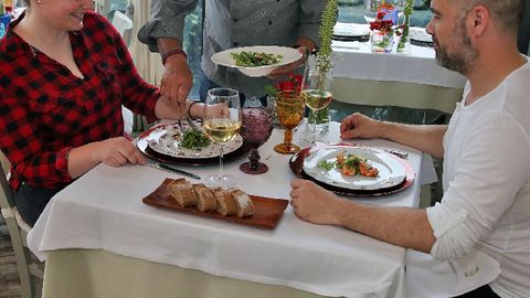 -Camarero, yo tomaré unos macarrones y mi acompañante una pizza con setas, berenjenas y aceitunas.
