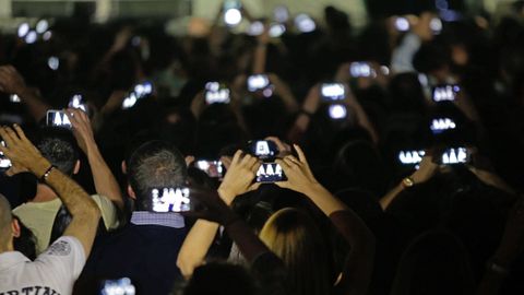 El público era un pastiche de generaciones y bronceados atlánticos envueltos en esa jocosidad voluptuosa que esculpen las vacaciones del verano. Todo iba bien hasta llegar a los temas clásicos que avisaban el final del concierto, cuando de pronto el público desapareció y se transformó en un mar de teléfonos móviles que se balanceaban al ritmo de un brazo-selfi. El escenario se desplazó a la pantalla del móvil a través de la cual la gente miraba la actuación; algo que Umberto Eco hizo cuando buscaba exteriores donde ambientar El nombre de la rosa y cuyas consecuencias escribió muy bien razonando por qué no lo volvió a hacer más. Entre otros argumentos decía que cuando llegó a casa y se puso a ver las fotos y los vídeos, tuvo la sensación de no haber estado allí, de haber sido un observador no participante, cuando él lo que quería era precisamente eso, empaparse lo más posible del entorno.