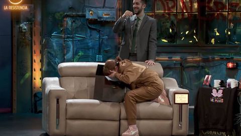 La actriz de La casa de papel llegó con cientos de billetes falsos para demostrar su intención de pagar los 50.000 euros de multa que por contrato tiene quien revela el contenido. Y ahí salió ella, con su su energía Vis a Vis, para darle a la audiencia lo que en siete meses no había conseguido ninguno de los que se sientan en el sofá de La resistencia. Najwa echó un vistazo a la caja y empezó a partirse de risa. Y en ese tono desbordado atacó: «¿Puedo decir lo que hay dentro? Ya es hora de cambiar este show». Y Broncano, después de pensárselo, asintió. En la caja, explicó Nawja, se ve como si se cortasen lonchitas de jamón, y de pronto se acerca un perro a olisquear y comerse esos restillos que quedan en el suelo. Más tarde se amplía la imagen y en realidad se descubre que es un tipo quitándose con un chuchillo una gran dureza de un pie. Arrggg.
