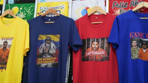 Si la captura de Nicolás Maduro no fue precisamente estética, las camisetas que celebran la efeméride no se quedan muy atrás. Las t-shirts de la nueva temporada se venden en algunos mercadillos. En este puesto callejero de la peruana Lima se solapan sobre las que festejan la llegada de un año 2026 que de nuevo ya tiene lo justo, a la espera de que ellas mismas acaben superadas por otras cuyos motivos sean el mapa de Groenlandia, el mapa de Cuba o una convención de ayatolás en grilletes, sin descartar que en la colección aparezca el día menos pensado el propio Donald (el pato no, el otro). Mientras el destino de la moda se cocina en Mar-a-Lago, he aquí las cuatro versiones de Nicolás Maduro disponibles. En tres de ellas el sátrapa aparece con mono naranja corredor de la muerte. En otra, el dictador viste el chándal Nike con el que fue detenido, e incluye la leyenda «Se acabó la dictadura». Ni que la hubiese diseñado Delcy Rodríguez.