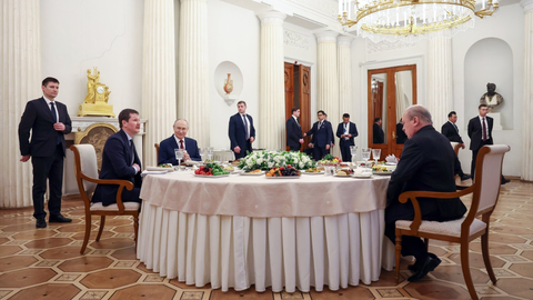 Esta foto es un cuadro. Está tomada en el Ermitage de San Petersburgo, una de las grandes pinacotecas del mundo. Está a tiro de dron de Kiev, donde el menú, y van 1.434 días de guerra, es obra de Moscú: un entrante de frío mortal y un plato de oscuridad. En este cuadro aparecen 13 seres humanos, con perdón. Dos con nombre y apellido, Vladimir Putin, de ocupación sus misiles, e Ibrahim Iskandar, rey de Malasia. Sobre la actividad del resto se admiten apuestas. El vecino de Vladimir Vladimirovich podría ser su intérprete, pero quién sabe. Diríase que esté haciendo reír al ruso impasible. Mejor que no se confíe, en dos días puede estar contándole el mismo chiste a una alambrada en Siberia. El resto de los que pululan alrededor de una deslumbrante mesa cubierta de platillos con frutas impecables, panecillos y caviares son camareros exmiembros del KGB o excamareros miembros del KGB. Todo está esplendorosamente iluminado. El Ermitage. Qué belleza. Y qué pena.