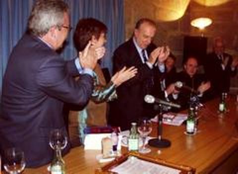Fraga recogió el premio Francisco de Moure por la restauración del monasterio El premio otorgado por el colectivo Francisco de Moure a la Xunta de Galicia, personificado en el presidente, Manuel Fraga y en el consellerio de Cultura, Pérez Varela, se entregó, como no podía dejar de ser, en el mismo escenario alabado tanto por su recuperación arquitectónica como por los trabajos en sus inmediaciones.