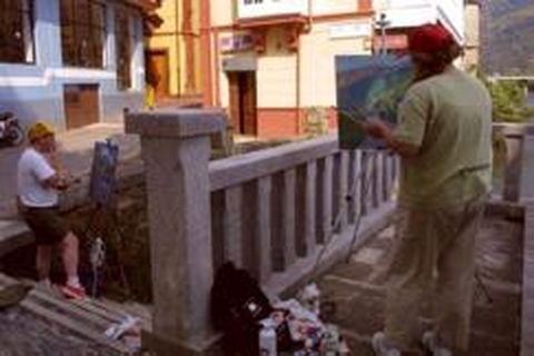 Los artistas becados en Valdearte destacaron la hospitalidad de los vecinos y la belleza del paisaje valdeorrés El aroma de la lluvia dejó paso en O Barco a los olores característicos del arte de pintar. Los pintores becados en Valdearte salieron ayer a las calles barquenses para montar sus caballetes y tomar los primeros apuntes en sus carpetas de dibujo. El Paseo del Malecón, el entorno del río Sil y Viloira fueron algunos de los puntos escogidos por los diecisiete artistas para plasmar el paisaje urbano y natural de la villa. Además, arrancaban los primeros talleres de pintura coordinados por Xoán Guerreiro.