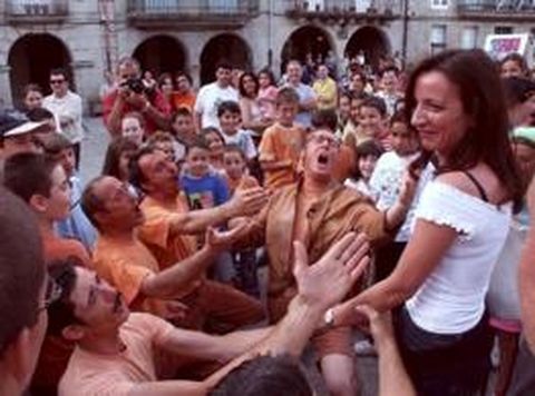 25 jul 2002 . Actualizado a las 07:00 h.A A Mostra viviu na noite de Santiago unha demostración, sin precedentes, da forza do poder mediático. A presencia de algúns dos actores das series «Mareas vivas» e «Pratos combinados» dinamitou as previsións da organización da MIT. Máis de 1.100 persoas conquistaron o auditorio do Castelo: 750 cadeiras ocupadas, os banzos das escaleiras invadidos e os pasillos ateigados de xente foi a resposta á presencia de actores como Ernesto Chao e Mabel Rivera -actriz que non pudo acudir a Ribadavia por estar convalecente dunha operación- de «Pratos combinados» ou Carlos Blanco e Santi Romay, de «Mareas vivas». Quico Cadaval completaba o reparto de «Un país de comedia», adaptación galega do formato de éxito internacional no que actrices e actores coñecidos expoñen, con humor e ironía, o seu xeito de ver o mundo ou historias e anécdotas -espacio que se fixo popular no Estado español en Canal Plus e Tele 5 baixo o título de «El club de la comedia», presentado polo actor do Grove Javier Veiga_. Invasión francesa A animación tamén estivo presente nas dúas últimas xornadas da MIT. O mércores foron os franceses de Vernisseurs os que encheron as rúas da vila de animación e sorpresas. Na xornada de onte correspondeulle o turno ó estadounidense Joey Joey e ós vascos de Mac Jeara's Band. A derradeira actuación da MIT 2002 no castelo protagonizouna Teatro Meridional, premio do público 2001, ca súa montaxe sobre «Miguel Hernández».