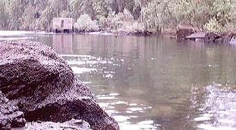 Cuando la presa se abre, el agua tapa por completo las zonas sucias de grasa y aceite Las fotografías fueron tomadas en la zona entre el embalse de Velle y Oira