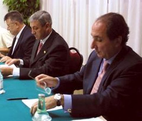 La junta de accionistas de Ucosa se limitó ayer a los dos puntos que el presidente había incluido en el orden del día. Dimisión y nombramientos. El primero, resuelto. El segundo, en el aire, pues nadie dio el paso para entrar en el consejo, precisamente por las dudas que la Asociación de Accionistas mantiene sobre el alcalde de la deuda tributaria. Y también, como alguno de los socios reconoce, por el temor a entrar en el consejo y verse salpicado por las responsabilidades penales que puedan salpicar a quien entre ahora en el consejo. Así las cosas, en un consejo de administración ya diezmado por las anteriores renuncias de Bermejo y Martínez García, la renuncia de Ruido y Barros ha dejado al madrileño Pedro Rodríguez (en primer plano), el hombre de la coruñesa Superco, como único consejero de la Unión Comercial de Ourense (Ucosa).