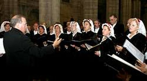 La formación protagonizó la misa del peregrino en la Catedral de Santiago El obispo de Ourense animó a los ourensanos a apostar por la defensa de la canción popular