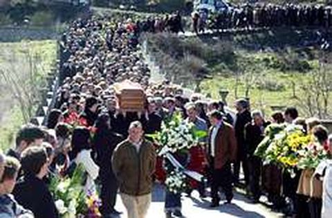 ?arios miles de personas llenaron ayer la localidad berciana de Puente Domingo Flórez para dar su último adiós al conocido pizarrista ourensano Demetrio Campo. El empresario había muerto el domingo en Madrid víctima de una insuficiencia respiratoria cuando se recuperaba de una operación de cataratas. El funeral, que se celebró con la presencia del obispo de Astorga y al aire libre para poder atender a la multitud, tuvo lugar en la plaza de los Reyes después de que el féretro fuese trasladado allí desde su casa. La numerosa familia del pizarrista estuvo arropada en todo momento por miles de personas sobre todo de El Bierzo, donde tenía su sede varias de las empresas dedicadas a la explotación de canteras; de Valdeorras, donde residía y comenzó su actividad profesional; y de Ortigueira, ya que parte de sus parientes vivían allí, entre ellos su hermano y alcalde Antonio Campo. La misa se celebró en medio de un respetuoso y espectacular silencio que sólo fue roto por un emocionado aplauso al terminar la ceremonia. Políticos y empresarios Al entierro del conocido empresario acudieron también políticos leoneses y gallegos entre los que se encontraba José Cuiña, amigo íntimo del fallecido. El ex conselleiro definió a Demetrio Campo como una persona «muy afable y sencilla» y se reconoció muy afectado porque «la familia Cuiña Crespo y la suya eramos muy amigos». José Luis Baltar, presidente de la Diputación ourensana habló del pizarrista como «un empresario modélico y, como persona, lo que más se debe valorar es su comportamiento humano, que era excepcional». Según Baltar, Demetrio Campo «expresaba una cercanía y un cariño que es dificil de encontrar». Las patronales, tanto pizarrera como valdeorresa, también quisieron estar presentes en el acto, así como varios alcaldes de la zona. María del Carmen González, regidora de Carballeda, dijo que le recordará «como una persona alegre, con ironía y que era un amigo de todo el mundo». Tras el emocionado funeral al aire libre, los asistentes acudieron en comitiva tras el féretro de Demetrio Campo, que era llevado a hombros por sus familiares más cercanos. Las miles de personas que les acompañaban trazaron una larga fila tras ellos. El cementerio, situado a las afueras del pueblo y con las cumbres nevadas al fondo, fue testigo del último homenaje a este valdeorrés ilustre. Su cuerpo descansa ya en el panteón familiar situado en la localidad..
