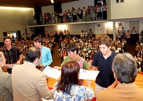 09 jul 2005 . Actualizado a las 07:00 h.En la mesa de recepción del Auditorio de la Universidade reposan 197 manzanas, el mismo número de chicos y chicas que esperan en la entrada del edificio que la USC reconozca sus méritos académicos. Todos tienen entre 17 y 18 años y han conseguido, al menos, un nueve de media en la calificación definitiva de las PAAU (pruebas de acceso a la universidad). Ninguno sabe el significado de la fruta, pero en los carteles en los que están impresos todos sus nombres se lee A USC recoñece o fruto dos teus estudos. Misterio resuelto, no era la manzana de la tentación sino de la gloria. «El secreto no está en estudiar el último día antes del examen, sino hacerlo todos los días», comenta Maikel Doespíritusanto, estudiante del instituto García Barbón de Verín. Maikel tiene un hermano gemelo, Marcos, también galardonado. Ambos, de 18 años, van a clase desde la pequeña localidad de Soutochao, a unos 20 kilómetros de Verín. Pese a que comparten muchas experiencias, no suelen hacer juntos las tareas, aunque los dos han obtenido unas calificaciones por encima del nueve. Ahora tendrán que separarse. Uno de ellos hará Periodismo, mientras que el otro se inclinará por otras disciplinas en el campo de la comunicación. Un 25% de los estudiantes premiados escogerá las universidades de A Coruña y Vigo, el 50% opta por Santiago y el resto se irá fuera. Sara Pérez, la alumna que obtuvo la mayor calificación, es la responsable de leer un discurso en representación de todos sus compañeros. Hizo un balance del curso pasado y anticipó sus aspiraciones académicas de los próximos años. «¿Cuál es el secreto de los resultados? Estudiar y ser constante, sobre todo este año, en el que era fundamental alcanzar la nota deseada para la carrera», reconoce Africa Morán. A continuación, el rector de la Universidade compostelana, Senén Barro, felicitó a los jovenes y aprovechó para tranquilizar a los futuros licenciados de Humanidades después de la polémica sobre su posible desaparición: «No sólo no van a desaparecer, sino que mejoraremos sus programas anuales», recalcó. Merecidas vacaciones Una chica recogió el diploma con una camiseta en la que se leía « I need Holidays » (Necesito vacaciones). Estos son los nombres de los ourensanos que más se las merecen: Nuria Fernández (Allariz), Lourdes Alfaya, Adrián Gómez y David Reverter de As Lagoas, Belén Vázquez (Divina Pastora), Mª José Fernández (Doce de Octubre), Mª Teresa Araújo y Noemí González (Eduardo Blanco Amor), Noemí Fernández (Julio Prieto Nespereira), Iago Fernández, Clara Eugenia Gil, Dinora Polanco, José Rodríguez y Rodrigo Verdeal (María Auxiliadora), Pablo González (Padre Feijoo Zorelle), María Álvarez, María Hernanz, Elía Mariño y Raquel Vázquez (Santa María), Nereida Fernández, Marta Pacio y Noelia Pérez (Santa Teresa de Jesús), Adriana Gallego y África Morán (Xesús Ferro Couselo), Iván González (O Couto), Maikel y Marcos Doespiritusanto (García Barbón de Verín) y Vanesa Bruña (Martaguisela de O Barco).
