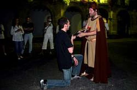 05 ago 2005 . Actualizado a las 07:00 h.?l pasado medieval de Ribadavia y sus tradiciones se pone de nuevo en valor en una original iniciativa desarrollada por el Ayuntamiento, a través de la oficina municipal de turismo y de la empresa Turmais, y gracias al programa A noite dos tempos . Se trata de un recorrido guiado, que se inicia a medianoche por las calles del conjunto histórico, salpicado con actuaciones sorpresas, no sólo con personajes típicos de la Edad Media sino también de los que han jugado un papel importante a lo largo de los años en O Ribeiro. Durante algo más de hora y media, gracias a la interpretación de seis actores, el rey García, los caballeros de la Orden de Malta o algunos leprosos, entre otros, toman vida y reproducen determinadas escenas relacionadas con el lugar, que explica de forma pormenorizada un guía de la oficina de turismo, o de la historia de la villa. Esta noche se lleva a cabo el tercero de estos itinerarios, tras los del 30 de julio y el 4 de agosto que han contado ya con un importante respaldo del público. El jueves tomaron parte del itinerario nocturno, entre las mágicas tradiciones de la Ribavia medieval, veinticinco personas. Más de la mitad de ellas eran de fuera de la comarca aprovechando los días de vacaciones que están disfrutando en diferentes puntos de la provincia de Ourense. El coste del particular recorrido nocturno es de 2 euros por persona, las interesadas en realizarlo deben inscribirse en la oficina de turismo, ubicada en la plaza Maior ribadaviense y de la que parte la visita, antes de las 20.00 horas o en el teléfono 988 471 275. El éxito de A noite dos tempos ha acompañado las dos primeras escenificaciones, ya que si bien no se ha realizado, de momento, una encuesta sobre el grado de satisfacción de las personas que han visitado la villa mirando hacia el pasado, sí se detectan reacciones distentidas además de una predisposición positiva hacia las representaciones de los actores que amenizan el recorrido. El número de ellos no ha sido fijo, ya que en la inauguración actuaron tres personas y en la segunda subió seis, seguirá variando durante los días 11, 13, 20 y 25 del presente mes en los que está previsto repetir los itinerarios nocturnos por Ribadavia.