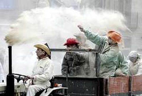 28 ene 2007 . Actualizado a las 06:00 h.?inzo se cubrió ayer de blanco, aunque no por efecto de la nieve que bien podría estar cayendo en estos días de tanto frío, sino por un fenómeno ajeno por completo a la meteorología y que se denomina Entroido. Y más que fenómeno el Entroido es casi un modo de vida que ayer se puso en marcha en Xinzo de Limia y que se prolongará hasta nada menos que el 25 de febrero. Entre una y otra fecha habrá tiempo para que circulen por la villa miles de personas que, eso sí, tendrán que cumplir los únicos requisitos de disfrazarse, cada uno a su gusto, e integrarse a fondo en una fiesta singular. Ayer ya pudo verse una pequeña muestra de lo que serán las próximas semanas en la villa antelana. El Domingo Fareleiro, primera de las tres jornadas dominicales que preceden a los días más grandes de la fiesta del carnaval, concentró en la praza Maior de Xinzo y las calles de su casco antiguo a decenas de personas cuyo objetivo era el mismo: procurar ensuciar con harina a cuantas personas se pusieran en su camino. Eso sí, siguiendo unas «normas básicas de conducta», como no tirar directamente a los ojos y no ensuciar turismos o escaparates -hay que decir que no siempre se cumplen estas premisas- los vecinos de la villa y los llegados de otras localidades, la mayor parte de ellos luciendo ya sus disfraces, se vieron inmersos en una auténtica farelada que sólo pudieron evitar quienes permanecieron a una distancia lo suficientemente prudencial como para no ser alcanzados. Así hasta derrochar 500.000 kilos de harina en una auténtica batalla amenizada, eso sí, por un grupo de gaiteiros. Las próximas citas para más fiesta serán el domingo oleiro y el domingo corredoiro.