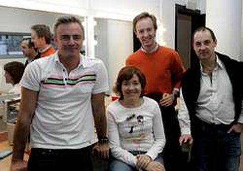 24 abr 2007 . Actualizado a las 07:00 h.Eleazar Ortiz, Carlos Hipólito, María Pujalte y Jorge Roelas se subieron ayer al escenario del auditorio para interpretar una pesadilla: la de los cuatro aspirantes a una plaza de ejecutivo en una gran multinacional. El método Grönholm trajo a Ourense a estos profesionales de la interpretación que tejen sus carreras con teatro, cine y televisión. Casi de anfitriona pudo ejercer la única actriz del reparto, por eso de que es gallega. A María Pujalte muchos la siguen recordando como Mamen, la secretaria de aquella serie de ficción (y tanto) llamada Periodistas. Precisamente en su camerino posó el reparto al completo para La Voz de Galicia. Lo hicieron después de un pequeño paseo por la ciudad. Por si alguno tenía dudas de que la lluvia es patrimonio gallego, les tocó usar paraguas. ¿Quiere ser solidario y colaborar en la construcción de un comedor en Ecuador? ¿Quiere ver a los políticos ourensanos en pantalón corto plantándole cara en el terreno de juego a un grupo de curas? Pues cuesta sólo tres euros y podrá hacerlo mañana, en el pabellón de Os Remedios, en la tercera edición del maratón solidario promovido por el equipo de fútbol sala integrado por sacerdotes Os Chispas. En la presentación del torneo estuvieron ayer, además de Enrique Nóvoa y Mario Guede, algunos de sus promotores y colaboradores. Luis Pérez, Jorge Valado y Fran Martín por el equipo de los alzacuellos; Assane Gueye, por la selección de senegaleses residentes en Ourense; y Maxi Cid, representando a los policías locales. También colaborarán con el torneo solidario el Ponte Ourense femenino, el Club Recreativo As Burgas y el Club de Gimnasia As Burgas. El alcalde aseguró ayer que intentará darlo todo en el terreno de juego. Que esté o no entre los titulares dependerá de un hombre de su partido: José Manuel Baltar ejercerá de seleccionador de la clase política y alineará a los mejores de las tres fuerzas mayoritarias. La tercera edición del campeonato la definió Luis Pérez como más ourensana. Quiso agradecer las colaboraciones de ediciones anteriores y citó a Paco Doforno, que contribuyó a que importantes equipos saltaran en clave solidaria a la cancha de Os Remedios. Del resultado -no tanto del marcador sino de la recaudación- estarán muy pendientes Manolo Rodicio y José Manuel Méndez, que están en estos momentos en la misión ecuatoriana de Jipi-Japa.