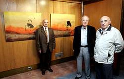26 may 2007 . Actualizado a las 07:00 h.Miles de ourensanos vieron la imagen que abre esta página en los periódicos y la televisión hace unos meses, en octubre del pasado año, cuando el ourensano Roberto Vila Sexto fue secuestrado en la franja de Gaza. Ahora pueden volver a verla convertida en cuadro por Roberto Vila Rodríguez, el padre del joven cooperante que fue liberado pocas horas después del rapto. Este doctor ourensano ha colgado su obra en el aula cultural de Caixa Galicia donde, hasta que se cierre el mes, estará expuesta la muestra de artes plásticas organizada por la Academia Médico Quirúrgica y en la que, además de los paneles diseñados por Vila padre, pueden encontrarse pinturas y esculturas de muchos profesionales ourensanos de la sanidad como Felipe Iglesias, Rubén Vilariño, Ignacio Granero, Carmen Pérez, Mercedes Hernández, Sita Franco, Ángel Mantilla, Carlos Guitián, Inmaculada López, Vilar Couce, Cristino Bravo, Adela Balado, J.M. Rielo o Ana María Risco, entre otros. A partir de una fotografía de Roberto en Palestina, donde trabajaba en el momento del secuestro con la Asamblea de Cooperación por la Paz, y dándole un tratamiento artístico minimalista, el médico y pintor ha querido reflejar la soledad en la que se encuentran en muchos momentos los cooperantes que eligen ese trozo de mundo para realizar su trabajo. Eligió la madera y los colores cálidos y arena para interpretar su visión de aquellos hechos, que fueron para él especialmente inquietantes. El susto, que según el propio Roberto Vila junior, fue mayor para la familia y los amigos que para él mismo, no le ha quitado las ganas de seguir colaborando. Su padre explicaba, en la inauguración de la muestra, que ahora se encuentra en Darfur, en Sudán. En Allariz se clausuró ayer toda una semana de actos culturales pensados exclusivamente para niños. Medomedá puso el broche de oro contando cuentos. Los más pequeños disfrutaron con los personajes de ficción y descubrieron que, con los libros, pueden dibujar nuevas realidades sin salirse de las páginas. El conservatorio cerró ayer el programa conmemorativo de su cincuenta aniversario con la actuación, en el auditorio, de 4Mality Percussion Quartet. Han sido varios meses de celebración y de música que han supuesto una oportunidad única para los amantes de la música. El director del centro, Jesús Alfonso González, y el coordinador del programa, Juan Enrique Miguéns, han contado con la implicación de profesores y alumnos.