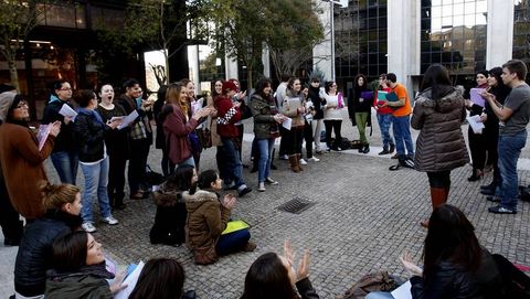 Y lo hacen, aseguran, de forma responsable. «Pensamos que a nos non nos convén perder as clases polo que decidimos que sería unha boa idea dalas fora», explicaba ayer Serxio Souto, portavoz de los universitarios, que asegura que la iniciativa ha tenido una muy buena acogida entre los docentes. Así, la gran mayoría se ha prestado a colaborar en la protesta y quienes no lo han hecho, sobre todo por motivos técnicos, han aceptado el aplazamiento de las clases hasta el próximo viernes. «Salimos fora porque quizás, ao paso que vamos, imos a terminar todos na rúa», ironiza el portavoz de los alumnos, que reconoce que los recortes ya se están notando en su ámbito académico. «Isto é unha cadea que afecta a todos os niveis, os docentes teñen máis traballo e nos temos materias que están impartidas por tres profesores distintos, a calidade do ensino está baixando moito», explica.