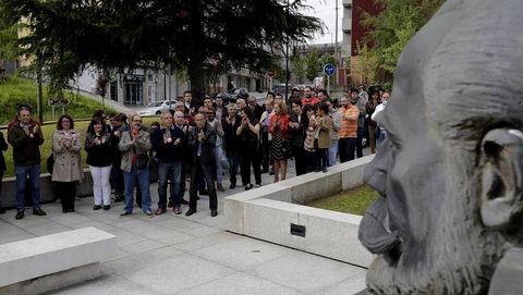 02 may 2014 . Actualizado a las 07:25 h.Como cada año, los militantes del PSOE ourensano se citaron ayer frente al busto de Pablo Iglesias para celebrar el Primero de Mayo. En plena guerra del socialismo local, ni siquiera el emocionado recuerdo al fundador del partido logró una tregua. Asistieron miembros de ambos bandos (básicamente, y sin entrar en matices, los que apoyan al alcalde y los que no), pero todos mantuvieron las distancias. Al finalizar la tradicional ofrenda floral sí llamó la atención un encuentro entre los «organizadores» de uno y otro lado. El momento, que recoge la fotografía de abajo a la derecha, no sirvió para limar asperezas; únicamente trataron detalles respecto a la organización del mitin que protagonizarán en Ourense el expresidente Zapatero y el candidato José Blanco el día 13 de mayo.