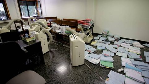 Utilizando como secadores los «pingüinos» (aparatos portátiles de aire acondicionado) de las distintas sedes del edificio, el personal colocó las causas más perjudicadas en el suelo y sobre los bancos para intentar recuperarlos y evitar en la medida de lo posible que se pierdan documentos importantes. Las ventanas también permanecieron abiertas para contribuir a la necesaria ventilación.