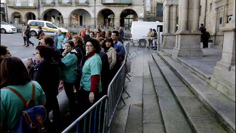 A la espera de la votación, las trabajadoras se concentraron ayer delante de la casa consistorial. Durante aproximadamente una hora reclamaron al Concello de Ourense que proceda a rescindir el contrato de la empresa.