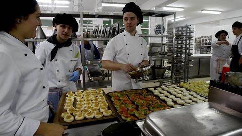 «A comida fast food -explica Pilar López, profesora en Vilamarín- está un pouco deostada porque se entende como mala cociña pero aquí faise un produto de calidade. Os alumnos traballan como se eu fose unha clienta que lles encargou organizar un evento dese estilo pero con dúas condicións: que a comida sexa nutricionalmente equilibrada e non caloricamente elevada».