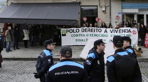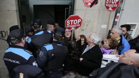 Ante las protestas de decenas de ourensanos, que acompañados de pancartas coreaban esta mañana cánticos de «más vivienda social y menos desahucio judicial», la comisión encargada ordenó el desalojo de esta familia que, con la ayuda de integrantes de la plataforma Stop Desahucios, procedió a recoger las pocas pertenencias que tenía.